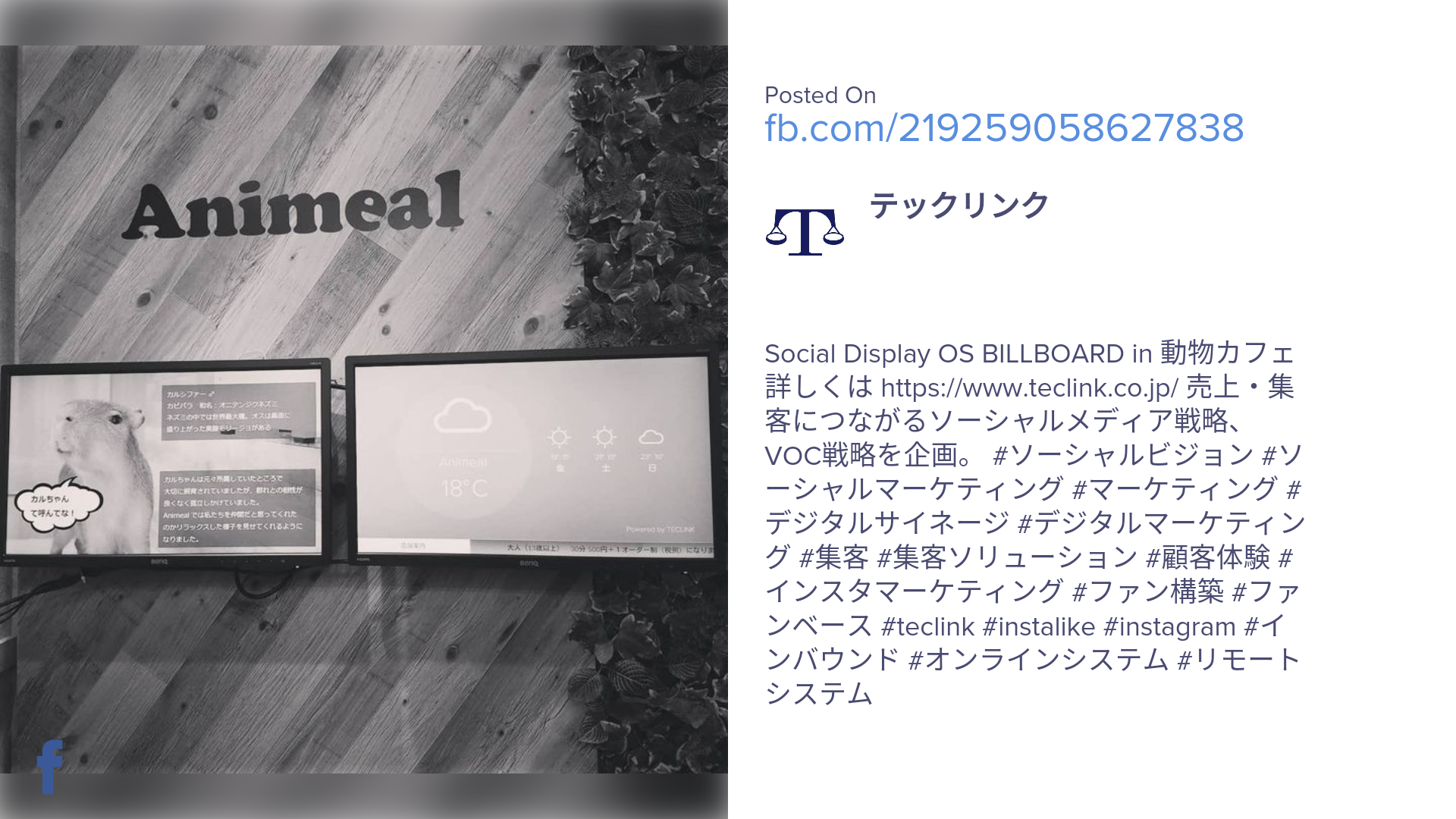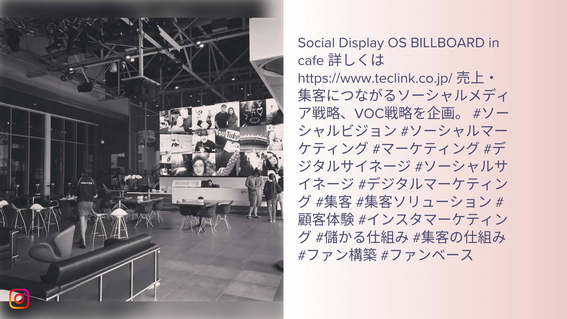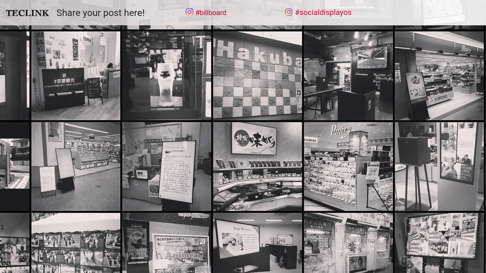 画像や動画、天気情報やニュースなど一般的なデジタルサイネージ要素に、口コミ(SNSの投稿)を連動させ